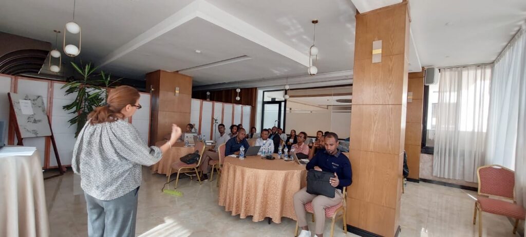 እቲ ናይ ክልተ መዓልቲ ናይ ኣሰለጠንቲ ስልጠና ብሰብ ሞያ ዝተመርሑ መብርሂታትን ናይ ተሞክሮ ልውውጥን ዝሓቖፍን ተሳተፍቲ ብንቕሓት ዘሳትፍን ሜላ ስልጠና ዝተኸተለ እዩ ነይሩ፡፡ እቲ ስልጠና ዝተሓላለኹ ንድፊ ሓሳባት ምስ ሃገራዊ ኩነታት ብምዝማድ ብተግባራዊ ልምምድን ጉጅለኣዊ ምይይጥን ዝተሓገዘ እዩ ነይሩ፡፡ ብተወሳኺ ድማ ብዛዕባ ዓለምለኸ ከይዲ ስግግር ፍትሒ ሰፊሕ ግንዛበ ንምዕባይ ከም ኡጋንዳ፣ ጋምቢያን ደቡብ ኣፍሪካን ዝበላ ሃገራት ልምዲታት ንፅፅራዊ ትንተና ተገይሩ እዩ፡፡