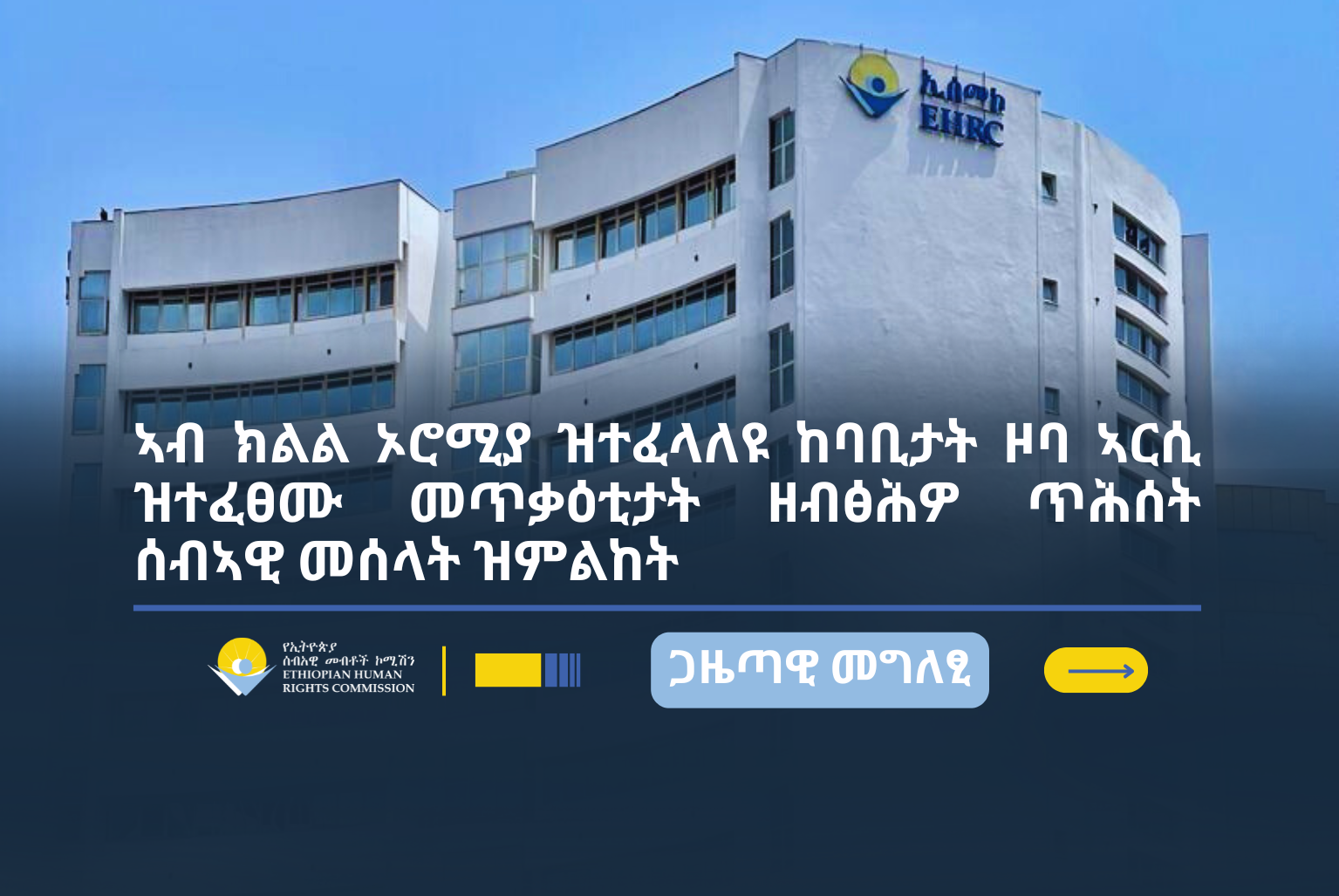 ዋና ኮሚሽነር ኮሰመኢ ብርሃኑ ኣዴሎ፦ ኣብ ክልል ኦሮሚያ ዝተፈላለዩ ከባቢታት ዞባ ኣርሲ ብዕጡቓት ዝፍፀም ዘሎ ጥቕዓት ጥሕሰተ ሰብኣዊ መሰላት እናስዐበ ምዃኑ ብምግላፅ ግህሰት ሰብኣዊ መሰላት ንኽፍጠር ምኽንያት ዝኾኑ ኣብ ልዕሊ ሲቪል ሰባት ዝበፅሑ መቕተልቲ፣ ጉድኣት ኣካል፣ ምፍንቓላት፣ ክትራንን ከምኡ እውን ናይ ንብረት ዕንወትን ዘረፋታትን፤ ናይ ሰባት ብህይወት ናይ ምንባር መሰል ሓዊሱ ነበርቲ መዓልታዊ ምንቅስቓሶም ብሰላምን ውሑስ ብዝኾነን መንገዲ ንኸይፍፅሙ ከቢድ ከምዝገበሮ ገሊፆም እዮም፡፡ እቶም ዋና ኮሚሽነር መንግስታት ፌዴራልን እቲ ክልልን ብተደጋጋሚ ጥቕዓት ኣብ ዝተፈፀመሎምን ናይ ድሕንነት ስግኣት ኣብ ዘለዎምን ከባቢታት እኹል ሓይሊ ፀጥታ ንኽምድቡ ከምኡ እውን ምስ ካልኦት መዳርግቲ አካላት ብምትሕብባር ብምኽንያት ዝተፈፀሙ መጥቃዕቲታት ካብ ኣከባቢኦም ንዝተፈናቐሉ ነበርቲ እኹል ዝኾነ ናይ ህፁፅ ጊዜ ሓገዝ ንኸቕርቡ ተፈናቐልቲ ናብ መንበሪ ኣከባቢኦም ተመሊሶም ዘላቒ ብዝኾነ መንገዲ ዝጣየሹሎምን ኩነታት ንኸመቻችውን ተመሳሳሊ መጥቃዕቲታት ንኸይፍፀሙ ኣቐድምካ ምግማትን ምክልኻልን ዝክኣለሉ ስራሕ ንክስራሕ ፃውዒት ኣቕሪቦም እዮም፡፡