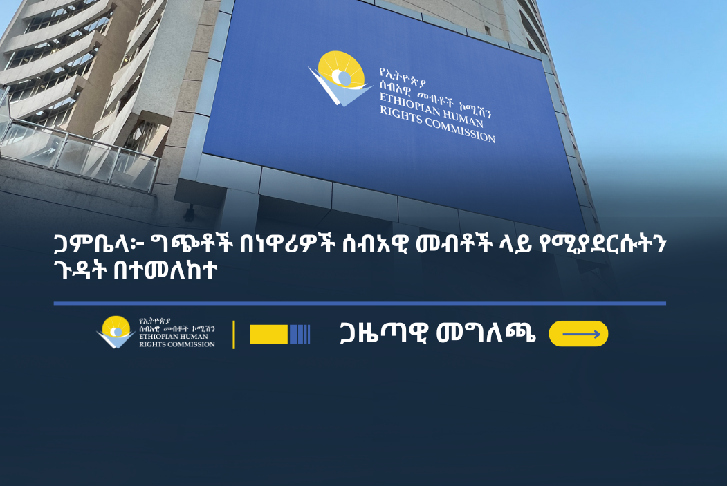 የኢትዮጵያ ሰብአዊ መብቶች ኮሚሽን (ኢሰመኮ) ከኅዳር 28 ቀን 2018 ዓ.ም. ጀምሮ በጋምቤላ ክልል ኢታንግ ልዩ ወረዳ፣ በጋምቤላ ወረዳ (አቦል)፣ በጋምቤላ ከተማ እና በዙሪያው ባሉ አካባቢዎች የተፈጠረውን ግጭትና የጸጥታ መደፍረስ ተከትሎ የተፈጸሙ የሰብአዊ መብቶች ጥሰቶችና ሥጋቶችን እየተከታተለ ይገኛል።