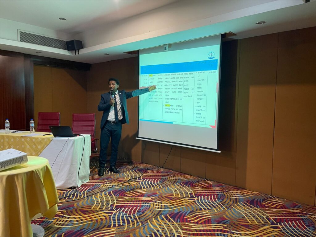 The Ministry of Justice presented an overview of key UPR recommendations addressed to Ethiopia, followed by an introduction to the recently developed implementation roadmap, outlining priority activities, implementation modalities and responsible institutions. The Ministry of Peace highlighted ongoing government initiatives aimed at protecting IDPs and providing durable solutions, emphasizing the need for robust policy, legal and institutional frameworks. Similarly, the National Partnership Coalition (NPC), a Ministry of Justice-led coordination mechanism for migration governance, shared progress made to date and outlined plans to ensure the effective implementation of UPR recommendations related to migrants’ rights.