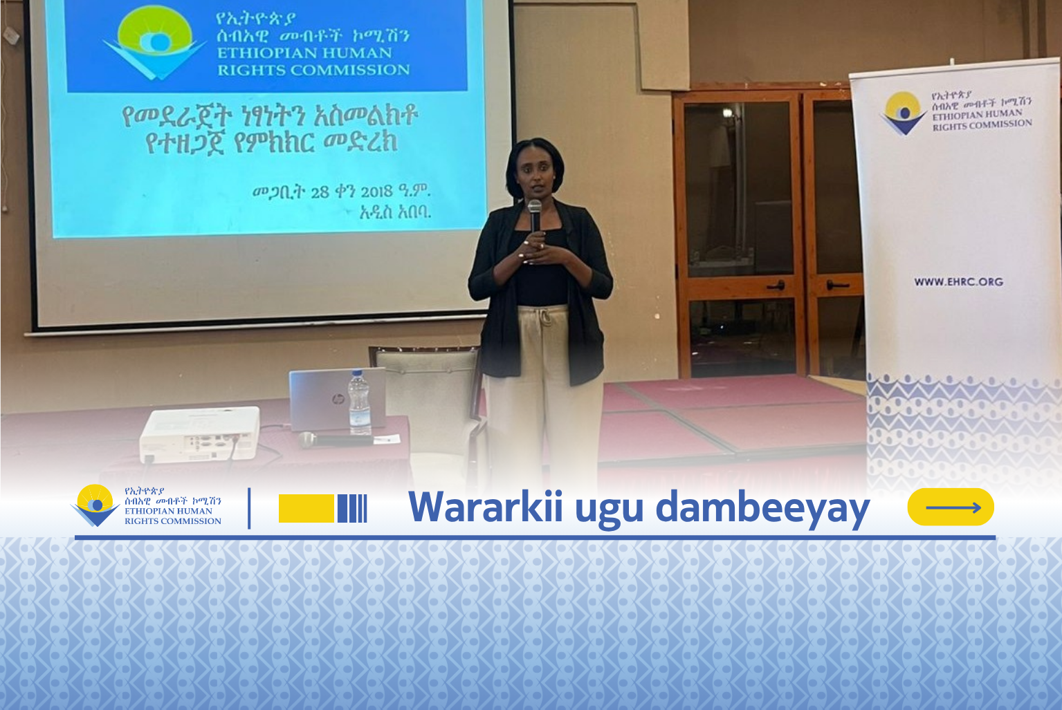 Guddiga Xuquuqda Insaanka Itoobiya (EHRC) ayaa magaalada Addis Ababa ku qabtay dood ku saabsan xorriyadda is-abaabulka taas oo lala yeeshay daneeyayaasha kala duwan taariikhdu markay ahayd Megabit 28, 2018 T.I. Dooddan waxa ka qayb galay wakiilo ka kala socday ururada bulshada rayidka ah, xafiisyada caddaaladda deegaannada, Hay’adda Warbaahinta Itoobiya, Isbahaysiga Ururada Shaqaalaha Itoobiya, Golaha Wadajirka ah ee Xisbiyada Siyaasadda Itoobiya iyo suxufiyiin.
