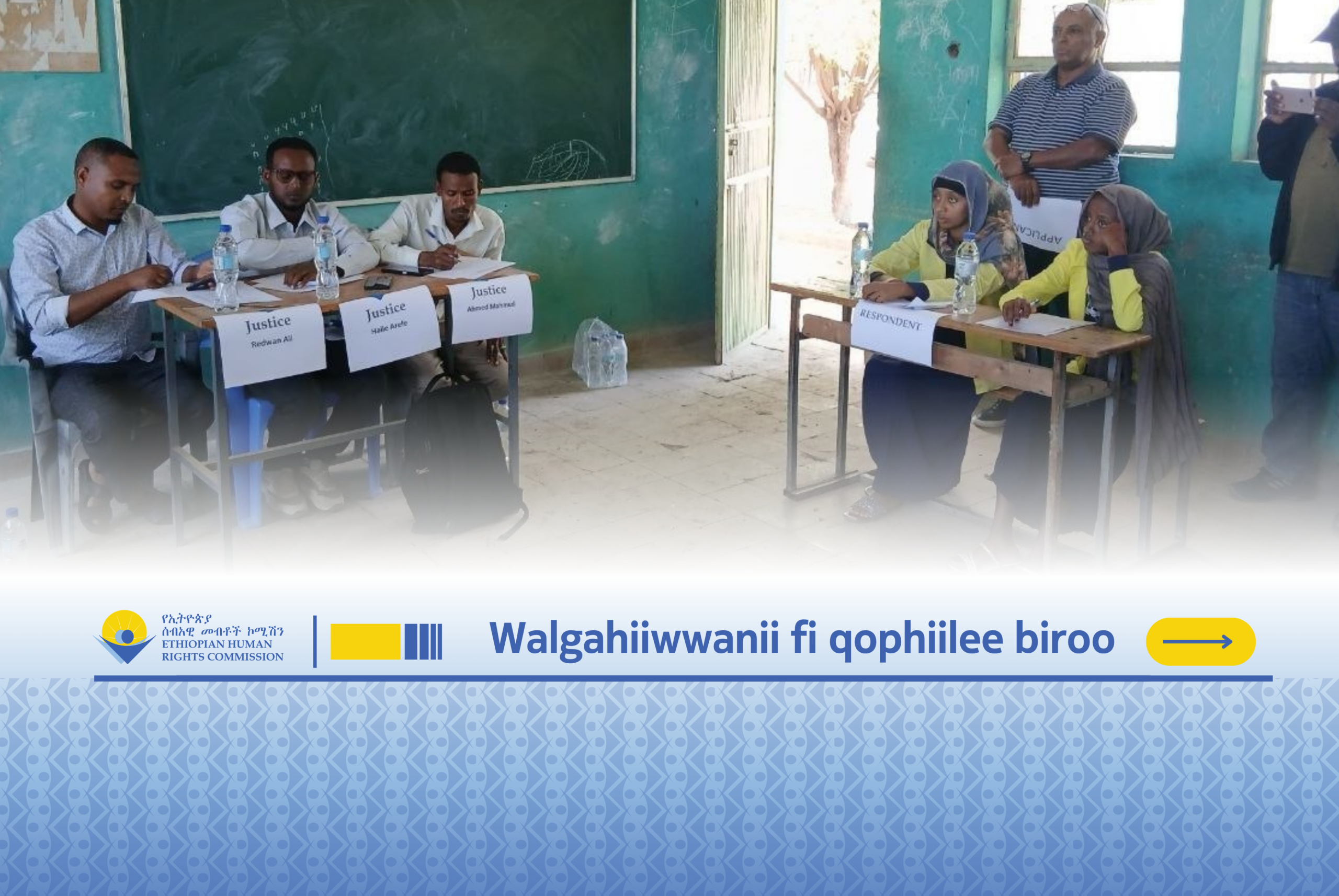 Dorgommiin biyyaalessa dhaddach-fakkii mirgoota namoomaa mana barumsaa sadarkaa lammaffaa marsaa 6ffaa Komishinii Mirgoota Namoomaa Itoophiyaa (KMNI)tiin sadarkaa naannootti gaggeeffamaa ture marsaan jalqabaa xumuramee jira. Dorgommiin kun Ammajii 2018 irraa eegalee naannolee 12 fi bulchiinsa magaalaa 2 keessatti geggeeffamaa kan ture yoo taú, barattoota 182 manneen barnootaa 91 irraa kan itti hirmaataniifi isaan keessaas walakkaan isaanii dubartoota.