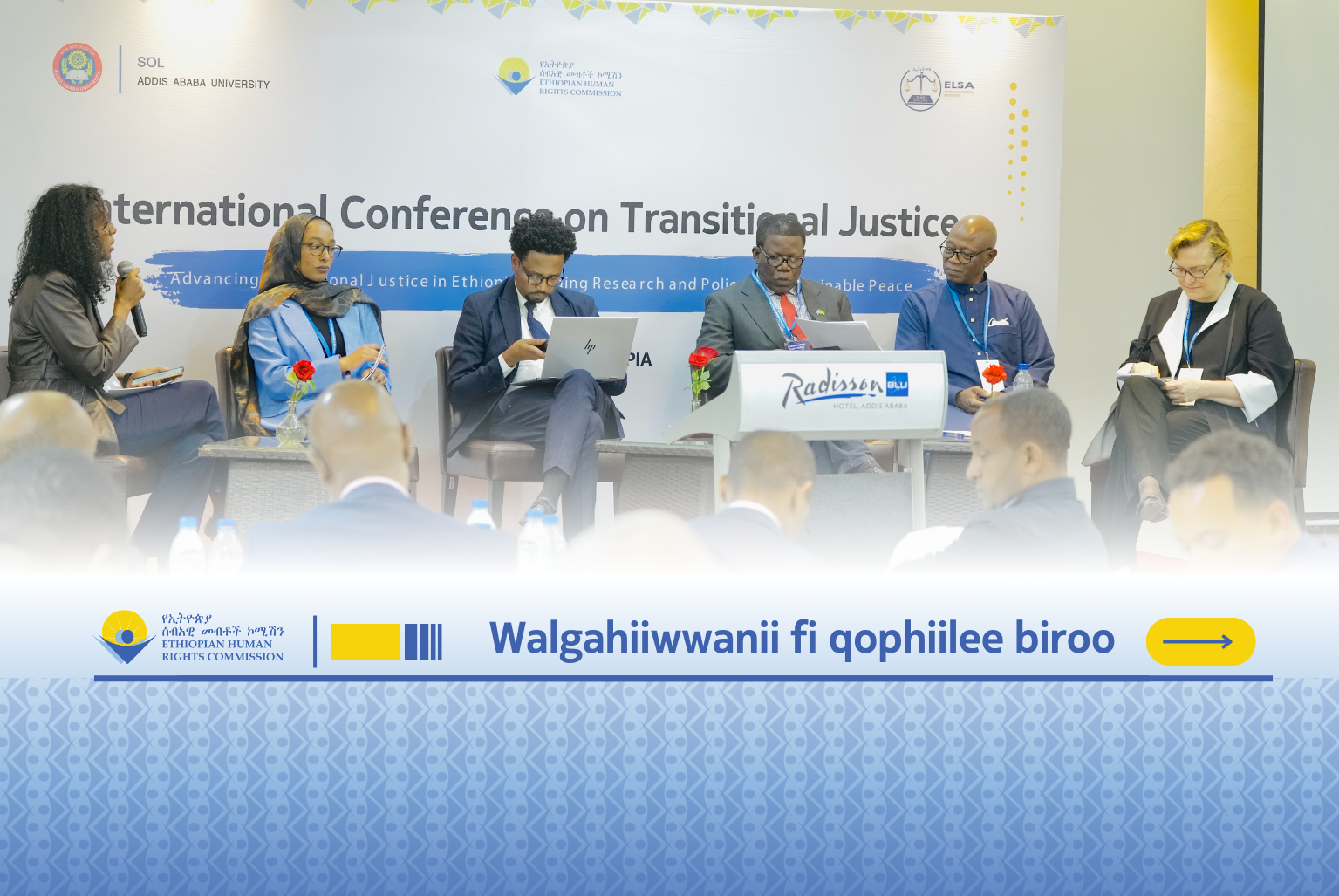 Komishiniin Mirgoota Namoomaa Itoophiyaa (KMNI) Yuunivarsiitii Finfinnee Mana Barumsaa Seeraa (AAU-SoL) fi Waldaa Manneen Barnootaa Seeraa Itoophiyaa (ELSA) waliin ta’uun; Yaa’ii Qorannoo Ce’umsa haqaa Idil-addunyaa mata duree “Qorannoo fi Imaammata Walitti qindeessuun Nageenya waaraaf” jedhuun Bitootessa 18 hanga 19, 2018 A.L.I Finfinneetti gaggeesseera. Yaa’ichi adeemsa ce’umsi haqaa Itoophiyaa boqonnaa murteessaa ta’e kanatti qindoomina qorannoo, imaammataa fi raawwii gidduu jiru cimsuuf kan akeekedha.