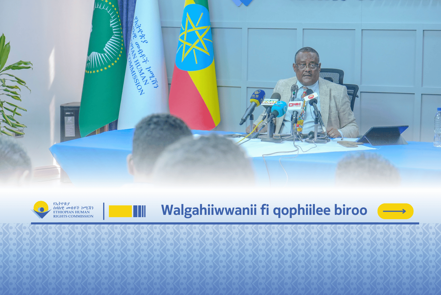 Komishiniin Mirgoota Namoomaa Itiyoophiyaa Gurraandhala 17, 2018, bu’aa hojiiwwan ji’oottan jahan darban keessatti raawwataman irraa argame ilaalchisee, tarkaanfiiwwan jajjabeessaa fi hudhaalee mudatan irratti Waajjira muummee isaatti ibsa gaazexeessitootaaf qopheessanirratti Miidiyaaleen fi ogeeyyiin ibsa gaazexeessitootaaf kenname irratti argamaniiru.