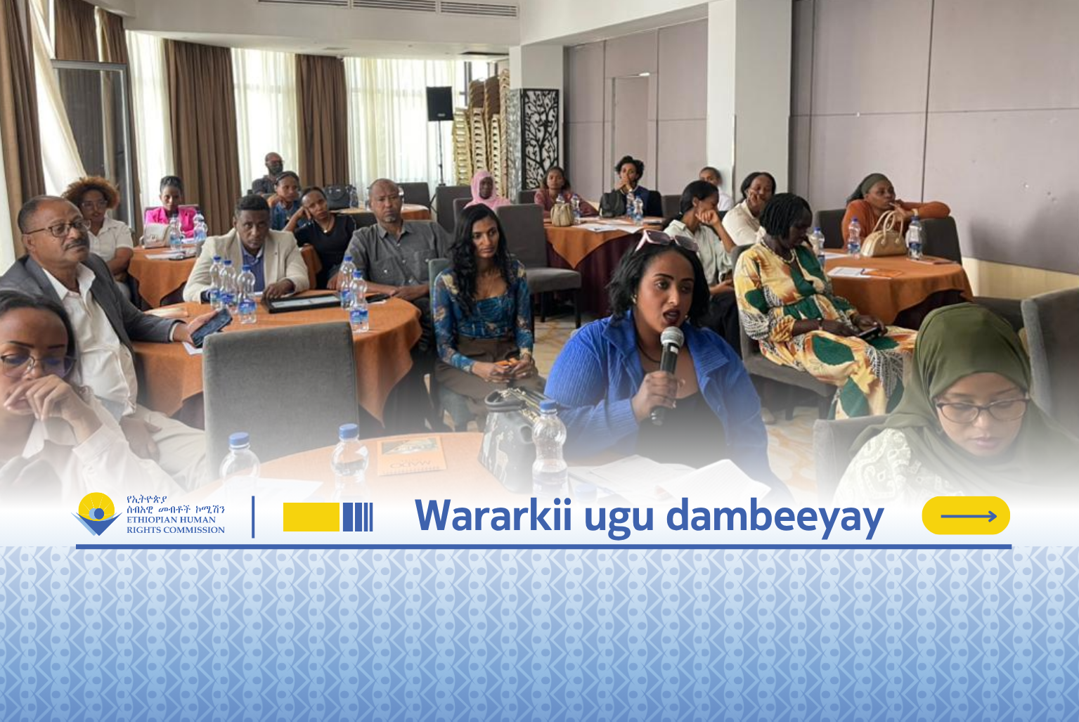 Guddiga Xuquuqda Insaanka Itoobiya (EHRC) ayaa wada-tashi la yeeshay daneeyayaasha, kaas oo ku saabsanaa ilaalinta sharciga ah ee ay mudan yihiin in la siiyo haweenka xubnaha ka ah xisbiyada siyaasadda, murashaxiinta madax-bannaan, iyo saxafiyiinta inta lagu jiro xilliyada doorashada. Madashan waxaa ka qaybgalay haweenka murashaxiinta xisbiyada siyaasadda, murashaxiinta madax-bannaan, saxafiyiinta, iyo sidoo kale daneeyayaasha ay arrintu khusayso.