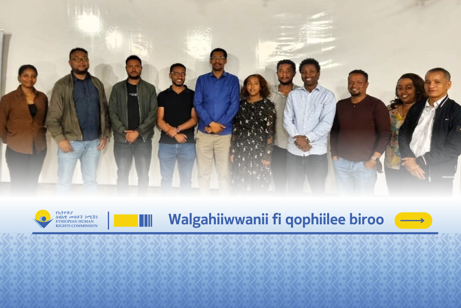 Komishiniin Mirgoota Namoomaa Itiyoophiyaa (KMNI) Waajjira Komishinara Ol’aanaa Mirgoota Namoomaa Dhaabbata Mootummoota Gamtoomanii fi Ministeera Haqaa Rippabiliika Dimookiraatawaa Federaalaa Itoophiyaa waliin ta’uun, workishoppii Gurraandhala 16-19, 2026 A.L.A Bishooftuutti (Itoophiyaatti) qopheessee jira. Workishoppiin kun dandeettii Dhaabbilee Hawaasa Siivikii (DhHS) cimsuuf kan kaayyeffate yoo ta’u, Tooftaa Biyyaalessaa Haarawa Hordoffii fi Gabaasa Walii-galtee Idil-addunyaa Loogii Sanyummaa Hunda Dhabamsiisuu dhiyeessuuf kan gargaaru.